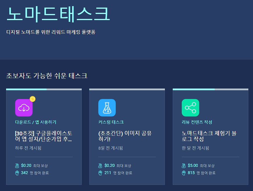 - 0.2~1달러의 리워드를 제공하는 태스크들에 소요되는 시간을 평균적으로 따져보면 기본적으로 1~5분,길면 10분 정도 소요되는 것 같습니다.